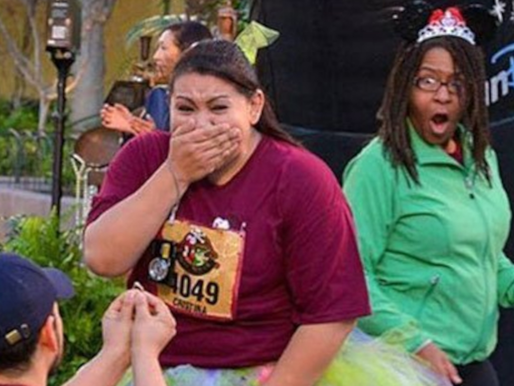 The girl’s face is already epic. Is she getting proposed to or is it the other woman? We think she was vicariously living through the other woman’s experience!