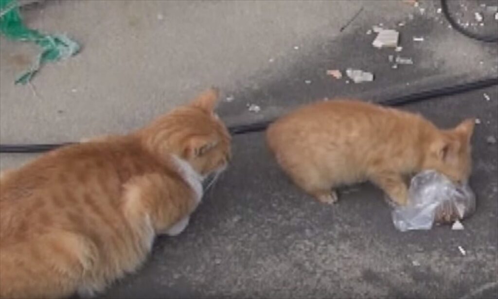 She still had the plastic bag still in her mouth. It was almost as if she was waiting for something. Then she saw it: a kitten.