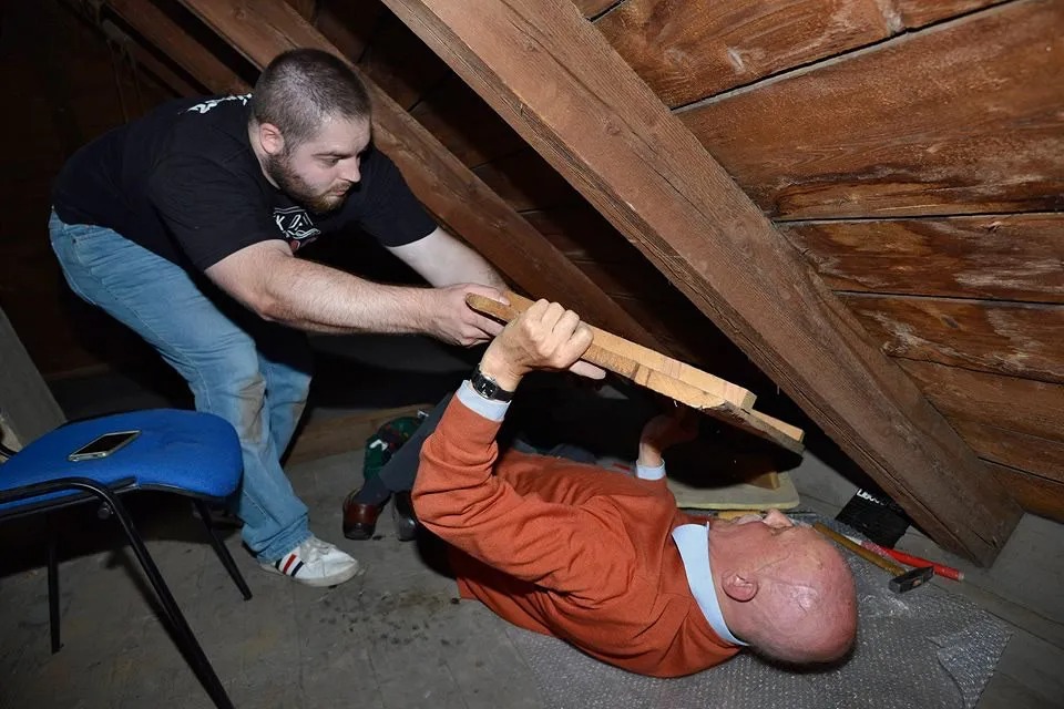 With his family walking behind him, he climbed the stairs to the dusty attic of his childhood home. He felt a pang of sadness when he saw that all the furniture that had been there when they had left had been removed – gone forever. After pausing for a few moments to let it all sink in, he continued his search. He began tapping on the wooden panels of wood that sloped down to form the A-frame ceiling and his heart skipped a beat.