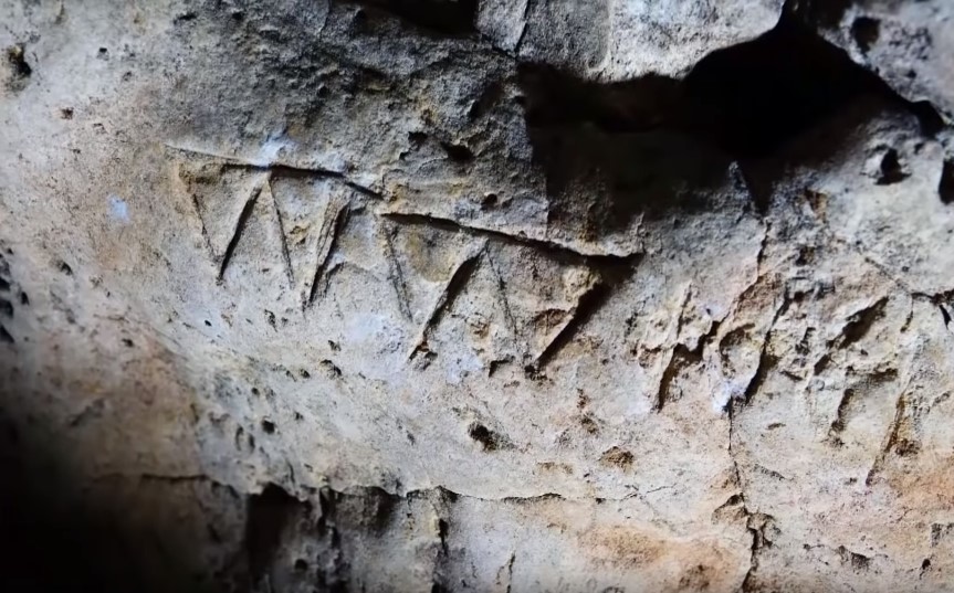 Mike looked up at the cavern’s ceiling in awe, his flashlight illuminating sections of the rock piece by piece. There were layers and layers of scratches in the stone walls. They covered almost every surface. But then, something else caught Mike’s eye.