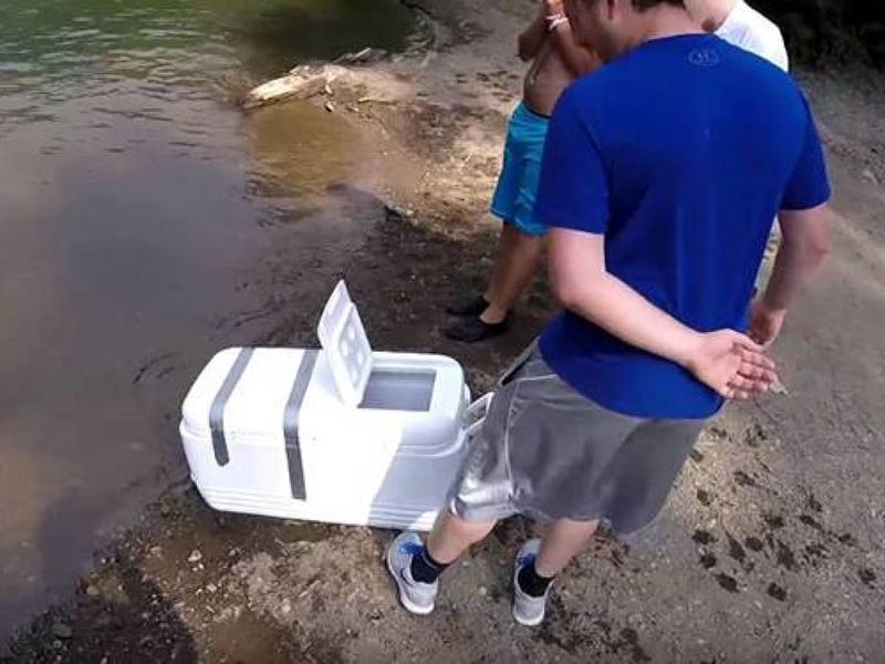 Everyone wants a chance to look at this strange find. They might know that it’s just a doll, but they need to see this for themselves. That’s when two women approach them wanting to know what’s in the box. The guys decide to have some fun at their expense by closing the cooler and letting them find out on their own.