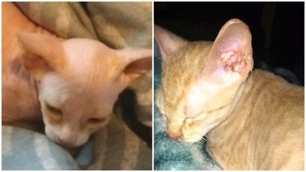 Feeing confused and angry, Shayla and Benji made their way back home. As she set him up for the night in his pen, Shayla vowed to take care of Benji no matter what. But as a few weeks went by, hair started growing on Benji’s skin! This shouldn’t happen to a true Sphynx, so the new cat owner herself Shayla, soon realized what the breeder had really sold her.