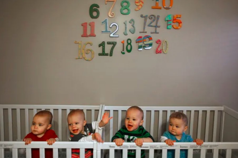 Los Johnston tenían todo preparado para cuando llegaran los bebés. Transformaron el gran salón de su casa de cuatro habitaciones en una guardería temporal hasta que los bebés fueran lo suficientemente grandes como para empezar a dormir en sus cunas.