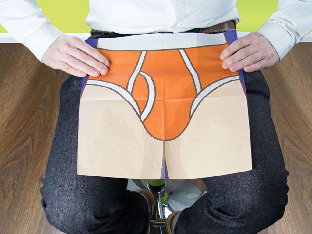 The lapkin is a paper napkin designed to look like men’s underpants, thus giving the impression that this is all you’re wearing when you’re sitting at the dining table. But it’s not as embarrassing as this next device that offers extra protection.