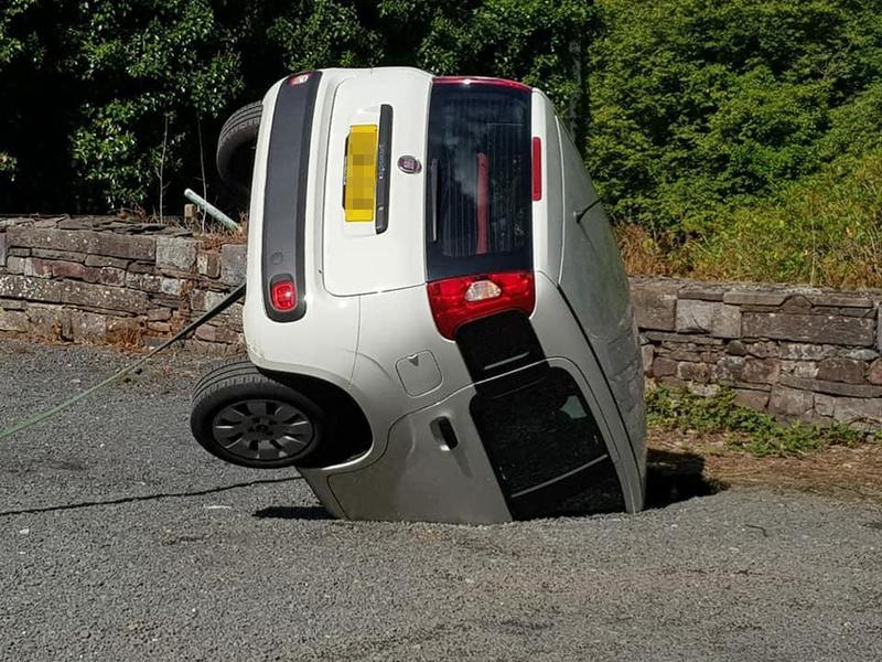 Imagine if you come back to your parked car, and find this: your beloved vehicle being swallowed whole by the ground… Either the ground is super hungry, or this person has parked their car above a sinkhole… It took them 4 hours but they actually managed to get the car out!