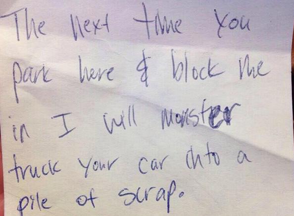 Funniest Parking Moments Caught On CameraBy Thomas Daily / November 30, 2020 Passive-Aggressive Note Credits Imagine coming back to your car to find this note. It’s pretty scary, to be honest. Whoever wrote this note isn’t joking around, best try to park your best else you may have to have your car monster trucked into scrap. Pages: 1 2 3 4 5 6 7 8 9 10 11 12 13 14 15