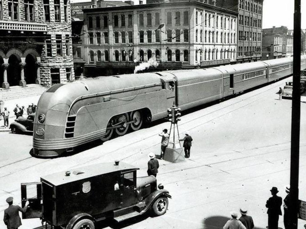 These days it can be hard to picture a bunch of railroad streamliners occupying the New York Central Railroad. During the early 20th century though, this was very common in major cities like New York and Chicago. Henry Dreyfuss was the designer behind these Art Decos. The Mercury was photographed passing by Syracuse City Hall in 1936. It was the one-quarter size of the original and was created to show riders and viewers the speed and efficiency of railroad streamliners.