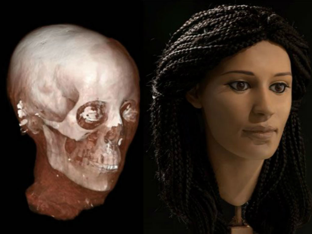A combination of medical research, forensic science, Egyptology records and a CT scanning of her mummified head, forensic artists were able to build the face of a first century Egyptian noblewoman known as Meritamun. It is believed that the Ancient Egyptian woman was aged between 18 and 25 at the time of her death.