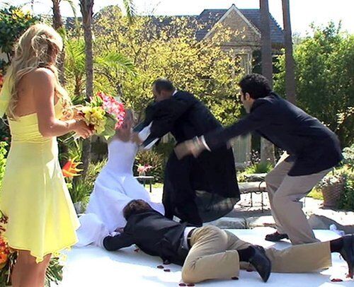 It happened right when they were leaving the church, with everyone cheering around them as they walked down the stairs. Suddenly, Dennis tripped and fell to the floor.