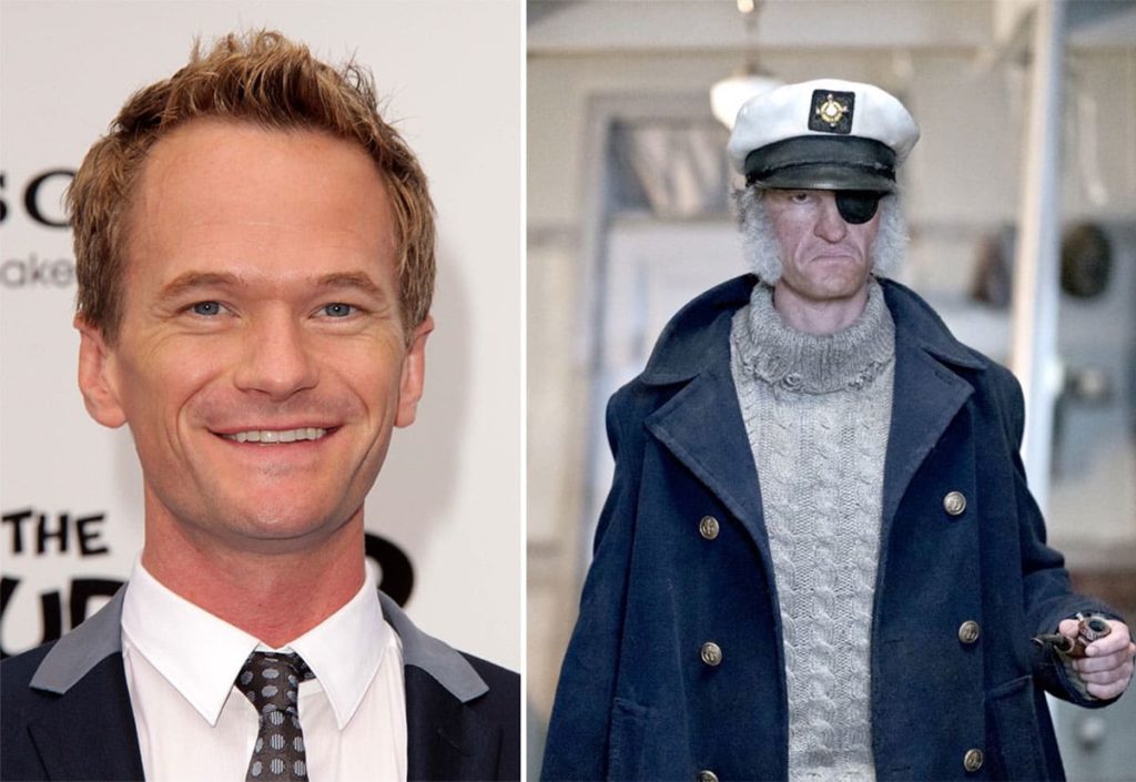 Neil Patrick Harris is such a famous actor that the makeup team had a challenging task to make him unrecognizable. However, they did a great job by placing prosthetics and an eye patch.