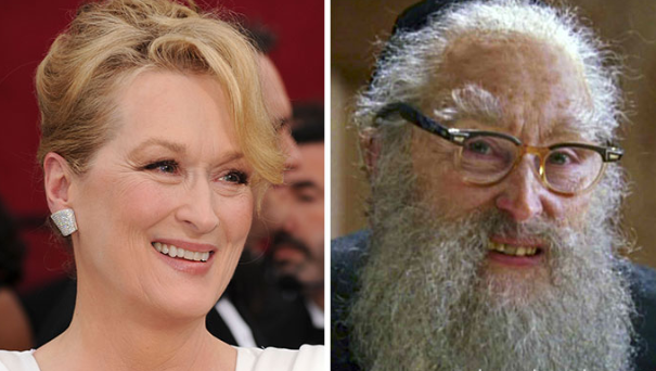 Meryl Streep is known for being one of the best female actors in Hollywood but no one believed she could pull off the role of a grumpy old man named Rabbi. As we can see in the picture featured above, Meryl Streep looked nothing like herself after the makeup team was done.