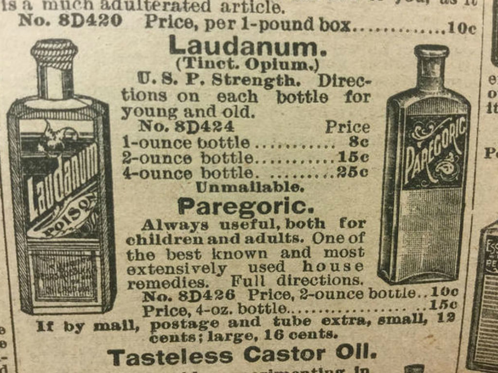 Laudanum was a highly addictive narcotic drug which was popular for treating pain in the 19th century. The medicine was extremely cheap and its ingredients were a mixture of opium and alcohol – a cocktail for disaster as it knocked the patient out. Laudanum was used for Cholera, menstrual cramps and common colds.