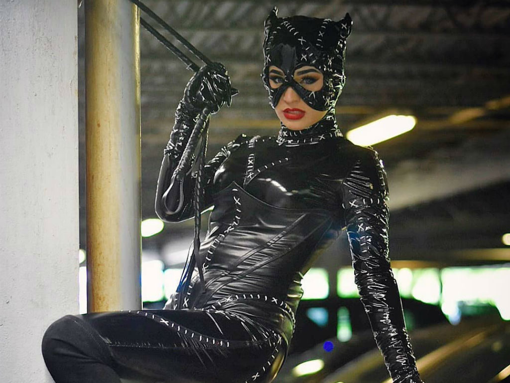 Skip the Halloween store and check out your online resources for this catsuit. If your goal is authenticity, look for a suit made out of latex material. Depending on which era of Catwoman you’re going for, you’ll want to accessorize accordingly. Hair color doesn’t matter and neither does make-up because, hello, you’ve got a mask on.