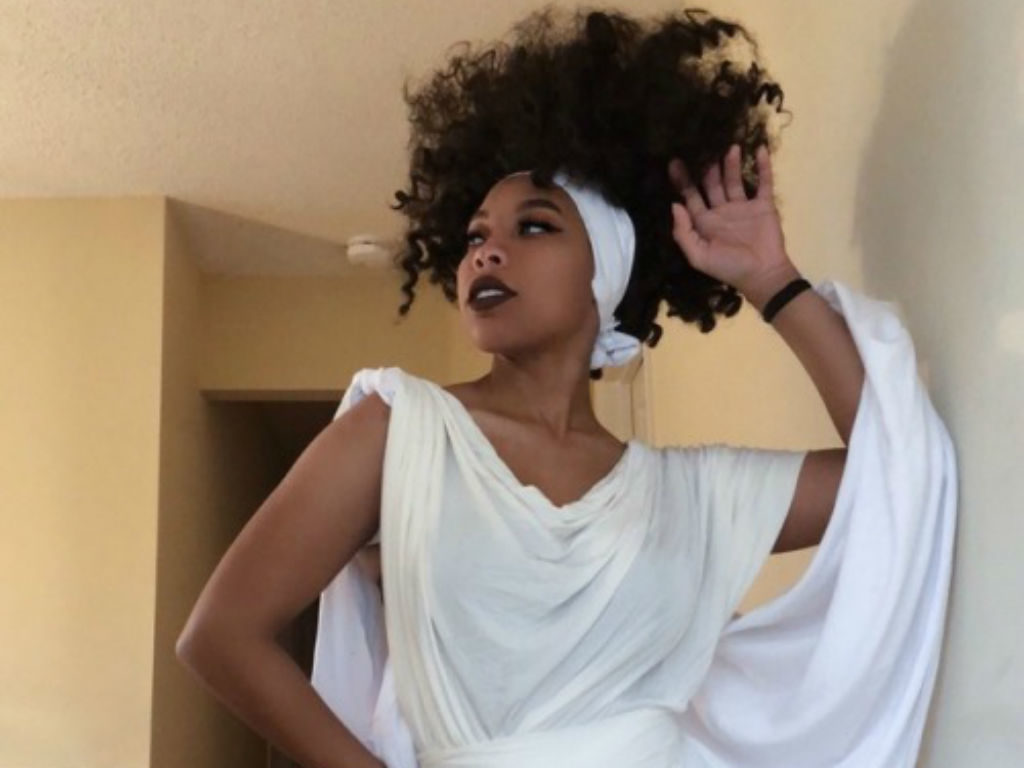 There are 5 muses: Calliope, Clio, Melpomene, Terpischore, and Thalia. You can be any of them. Try to steer clear of buying the costume-specific wigs from the internet because, well, they can be accidently misconstrued as offensive. Throw on a sheet, if you want, or find a long white dress to adjust according to which muse you choose to be. A sheet might be easier to customize, though.