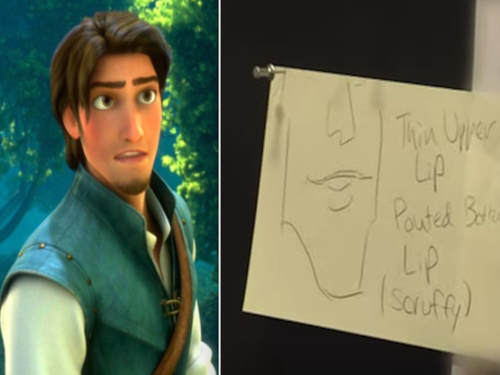 Flynn Rider’s appearance was designed after women from the studio picked their favorite physical attributes from pictures of Hollywood’s leading men. Scruffy and “pouted bottom lip” were a big win.