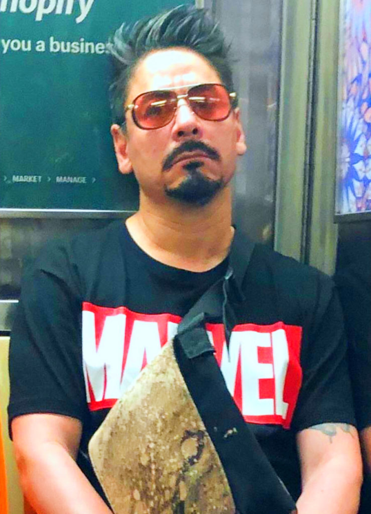 From this guy’s facial expression to the t-shirt he’s so rightly rocking, this guy is the spitting image of a certain superhero. Yes that’s right, Iron Man. This guy has a definite “Tony Stark” look that could easily confuse fans. But let’s be real would the real Iron Man really be caught catching the tube? We think not.