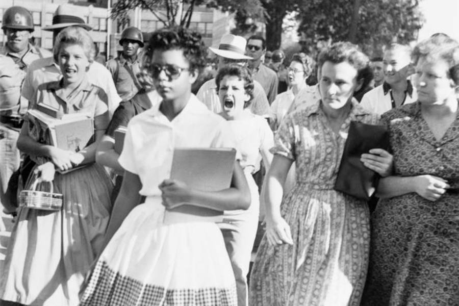 Eckford fue uno de los nueve estudiantes suficientemente resueltos para engendrar el cambio absolutamente necesario en esta era, tras la ilegalización de la segregación de los alumnos según una declaración hecha por la Corte Suprema de los Estados Unidos en el año 1956. A pesar del mar de emociones negativas que la envuelve, amenazando con tragarla, Elizabeth se mantiene serena e inalterada y si se sentía algo intimidada en este momento, no fue nada perceptible; de hecho, el contraste es muy marcado, el populacho amenazador y enojado frente a una Elizabeth tranquila y compuesta.