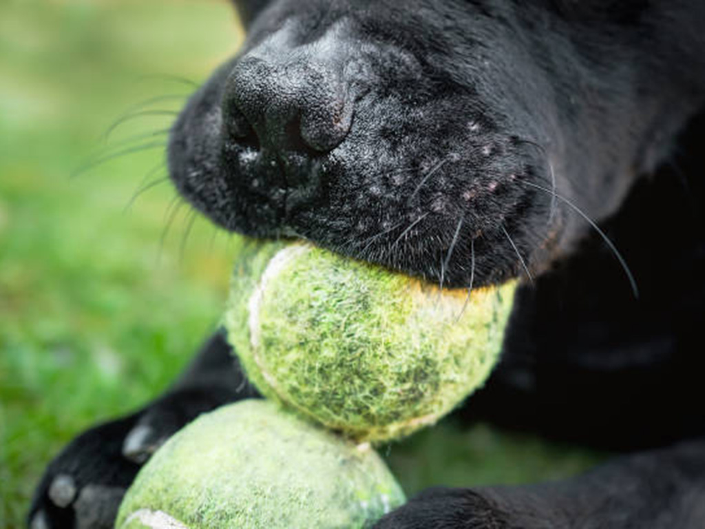 Antony picked up all the tennis balls from the box and tossed them down the hallway. Tank jumped around, clearly bursting with excitement when he saw the balls – he was acting like a puppy!