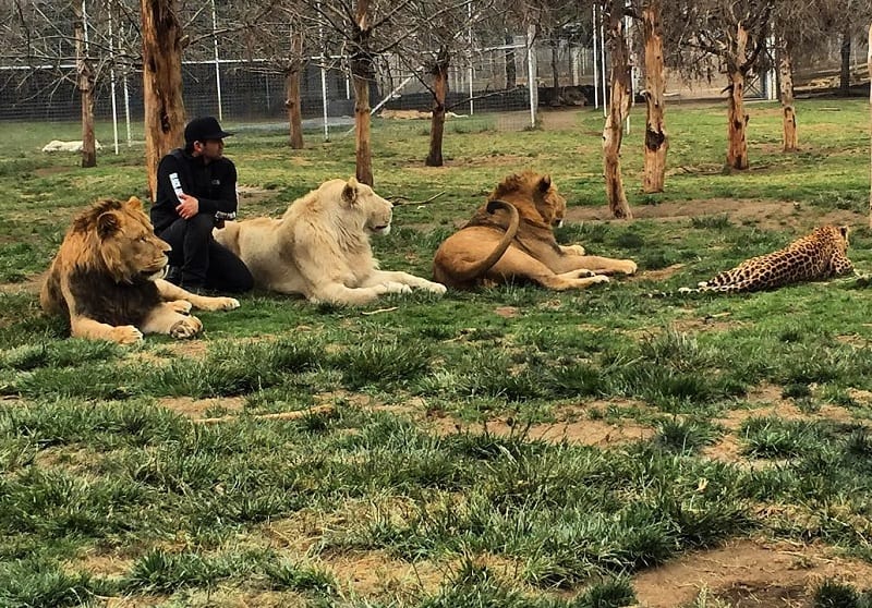 Adolfo kept visiting the sanctuary and met the other cubs he helped hand rear. Here he is chilling with the big cats in the shade. Isn’t this a photo you would rarely see? Adolfo isn’t the only one who has a special bond with big wild cats, though!