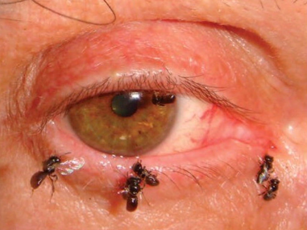 Insects flew into the eyes of a 28-year-old Taiwanese woman named Ms. He while she was pulling weeds. After going to the hospital, Dr. Hong Chi Ting of the Fooyin University Hospital discovered 4mm Sweat Bees had been living in her eyes. But he was able to remove the insects by pulling them from their legs.