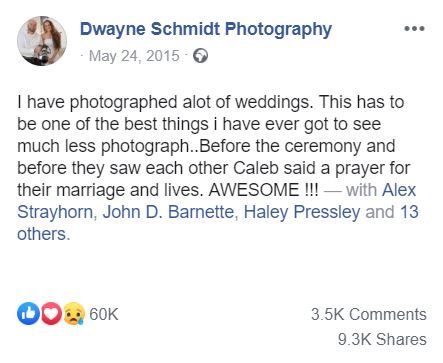 Alla maggior parte dei fotografi piace pubblicare sui loro social media un’anteprima su un progetto a cui stanno lavorando. Dwayne era così eccitato e commosso dal matrimonio di Caleb e Maggie, che ha subito condiviso insieme la loro foto pre-cerimonia.