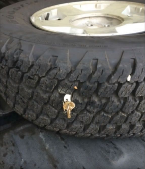 If you were looking for your keys, then you should know that they’re stuck in this driver’s tire. Can you believe they had to be at a certain angle to get stuck like that? Well, at least the damage wasn’t as big as the one in the next photo!