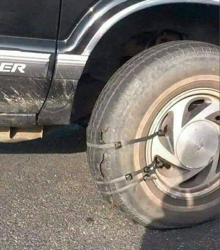 People Reveal the Strangest Things They Found In Car TiresBy Tammy Salt / March 19, 2020 DIY Fixing Tires pinterest.com It might not be a safe fix, but it’s certainly ingenious. Maybe the plastic straps will hold until the closest car shop. At least he didn’t use tape! Pages: 1 2 3 4 5 6 7 8 9 10 11 12 13 14 15 16 17 18 19 20 21 22 23 24 25 26 27 28 29 30 31 32 33 34