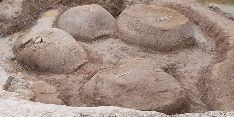 The four shells were all facing the same way, to the west, and after further investigation, it appeared they all died at the same time. Their position in the ground also led scientists to believe it was a family or hunting group.