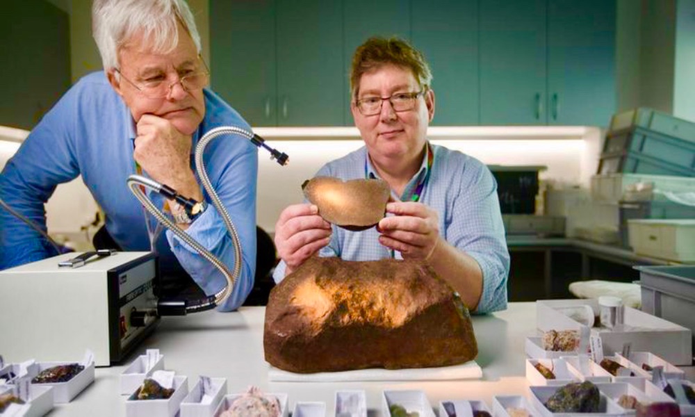 Discussing the rock with Dave, scientist Dermot was fascinated with it’s sculpted, dimpled look. It turns out that that’s formed when meteorites come through the atmosphere; they’re melting on the outside and the atmosphere sculpts them. Dave was amazed! Could it really be true that this rock was the real thing?