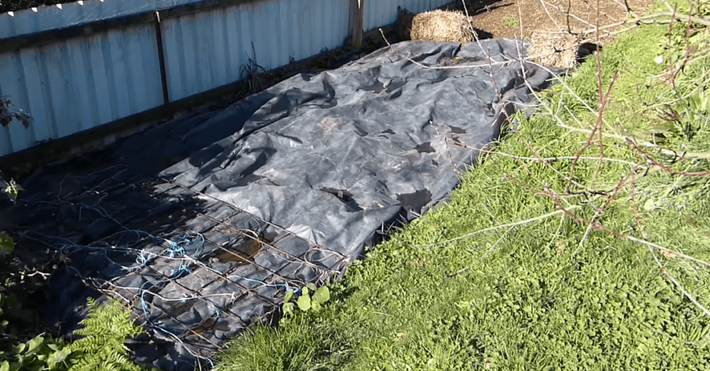 On the opening hole, a black piece of plastic stuck out from beneath the grass. James approached the hole and grabbed the piece of plastic. He tried to pull it out but it wouldn’t budge. It looked like the edge of a black trash bag.