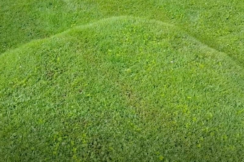 He was met with a sight he had never seen. A bloated patch of grass stuck out amongst the rest of the flat trimmed green lawn. He was in utter confusion.