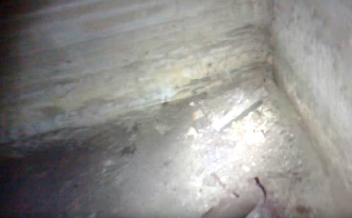 Cyrex686’s eyes followed the flashlight beam as it traveled over the floor and ceiling. Oddly enough, there was a pipe on the floor that wasn’t attached to anything, and a hook hanging overhead. Then, he saw the strange markings on the walls and froze in his tracks. But, try as he might, he couldn’t explain them.