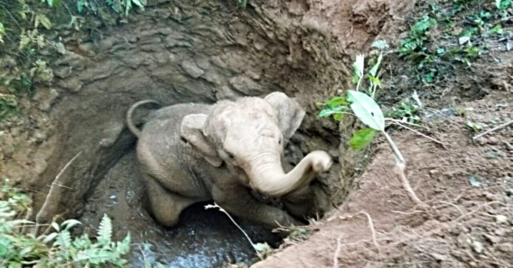 When the herd realized that their baby was in terrible danger, they panicked. It struggled to stand up and get moving, but the hole was too deep and the mud was so slippery and wet.