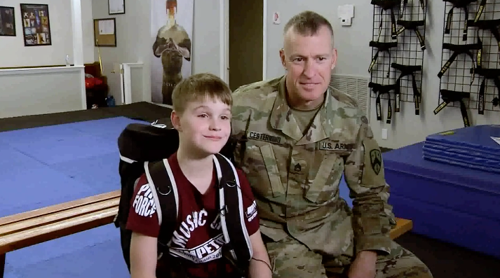 Military Dad Surprises His Son During Blindfolded Sparring SessionBy Harvey Shepherd / May 30, 2019 1. Proud Son bloomjoy.com When asked about how he feels about his father getting deployed, the son said that he is proud. He knows his dad is a hero and this is all that matters to him. Pages: 1 2 3 4 5 6 7 8 9 10 11 12 13 14 15 16 17 18 19 20