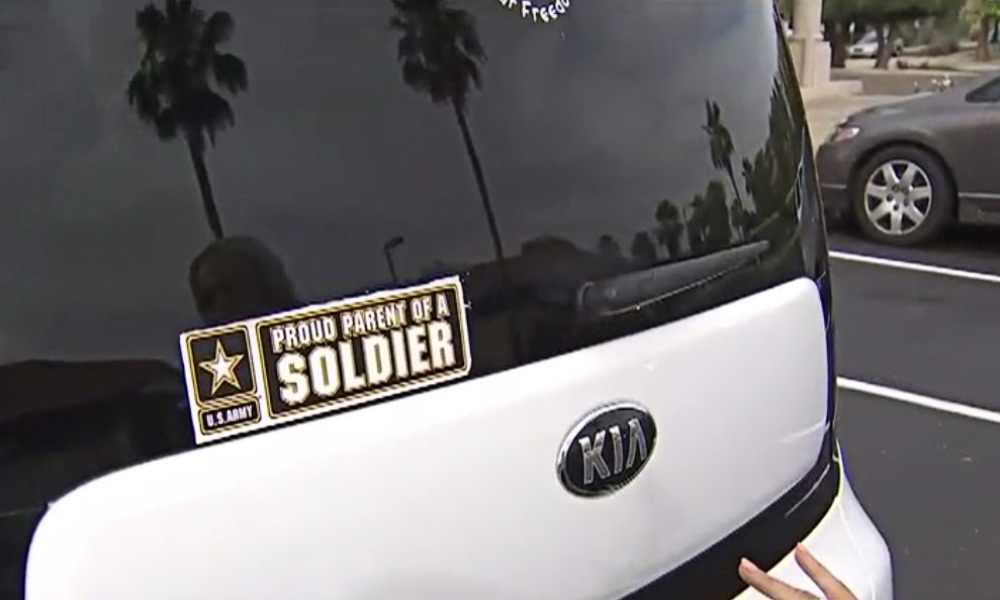 A casual passerby had apparently seen a sticker on the back of Jodie’s Kia, which read, “Proud parent of a soldier.” And it was this simple yet effective slogan that prompted the complete stranger to act. But it wasn’t just a hand-written note that they fixed to the windshield. There was something else.