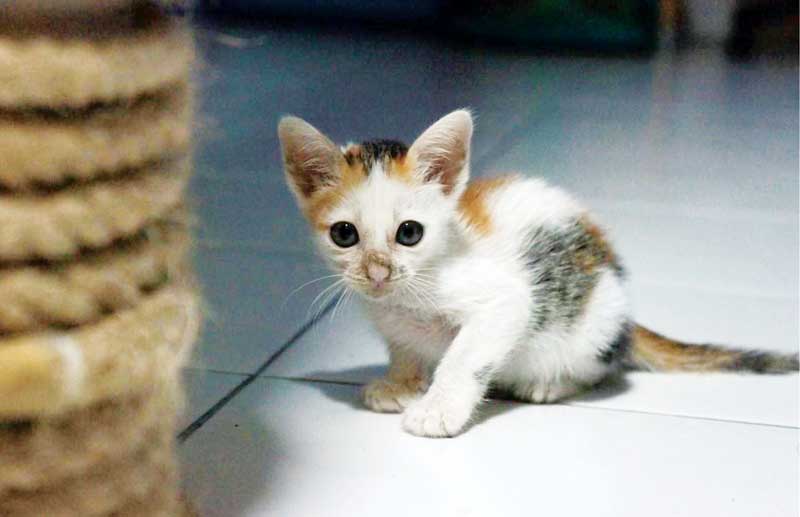 One night, Bernita opened the front door and found a tiny little kitten standing in front of her. The animal was a bit dirty and looked hungry. It was clear that the kitten was a stray.