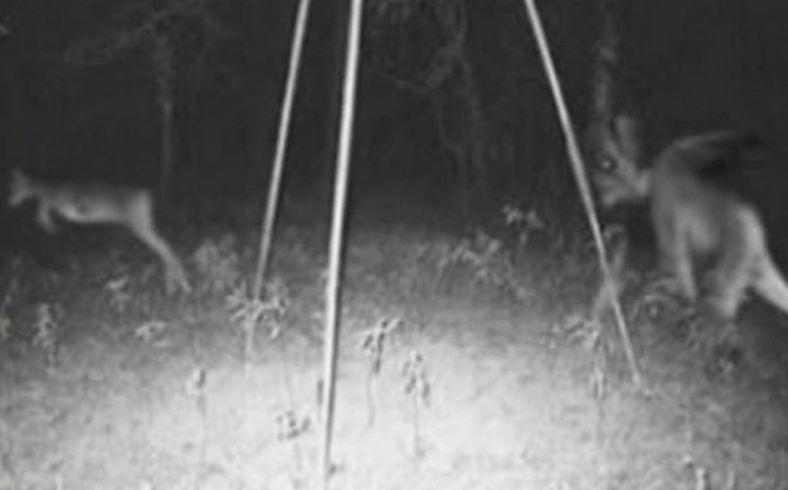 When one man set up a camera in his backyard to see who was leaving deer carcasses on his lawn, the last thing he expected was to capture this heart-pounding image of some kind of winged beast chasing down a poor little deer!