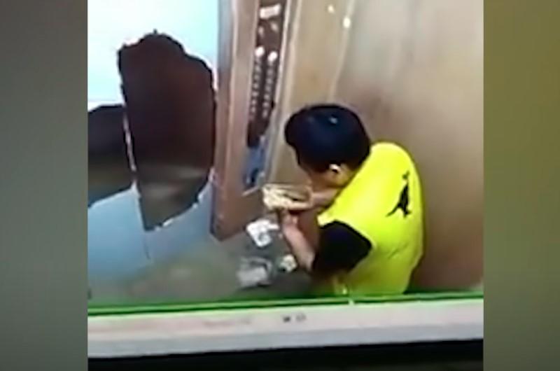 Here’s another food delivery guy who just couldn’t resist the delicious smell of the steaming food that he was meant to be delivering. He looks around to make sure he’s alone, then furtively opens each package and has a bite of everything — he even opens one container and takes a sip of the soup!