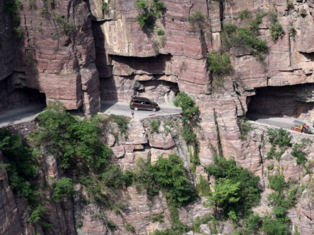 The Chinese town of Guoliang carved a road on the side of the Taihang Mountains, which took five years to finish. But sudden drops and sharp turns await any driver brave enough to traverse the Guoliang Tunnel Road.