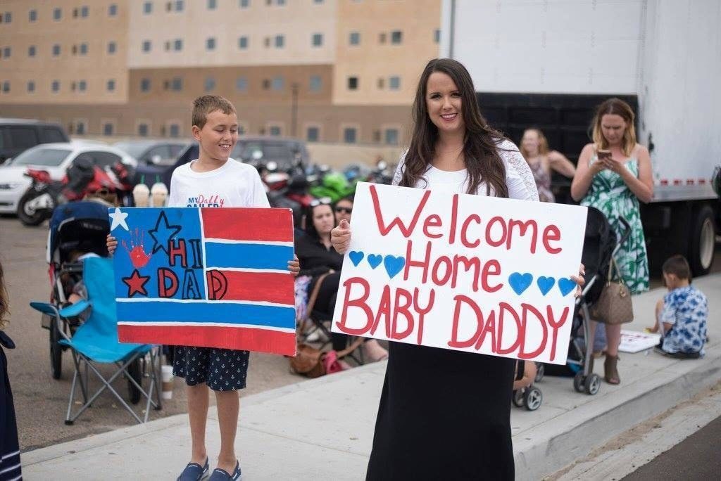 When the children saw their dad they ran through the crowd shouting excitedly. They jumped into his arms and it was hard to tell who was more excited, the children or Matthew. When he finally saw her, Rebecca was standing there holding a sign which read “Welcome Home Baby Daddy.” This didn’t really seem strange since he was a father of three young children. As he moved in to hug her, Rebecca dropped the sign and asked, “Do you like my sign?” Matthew didn’t have time to reply because as she dropped the sign he saw her large round pregnant stomach come into view.
