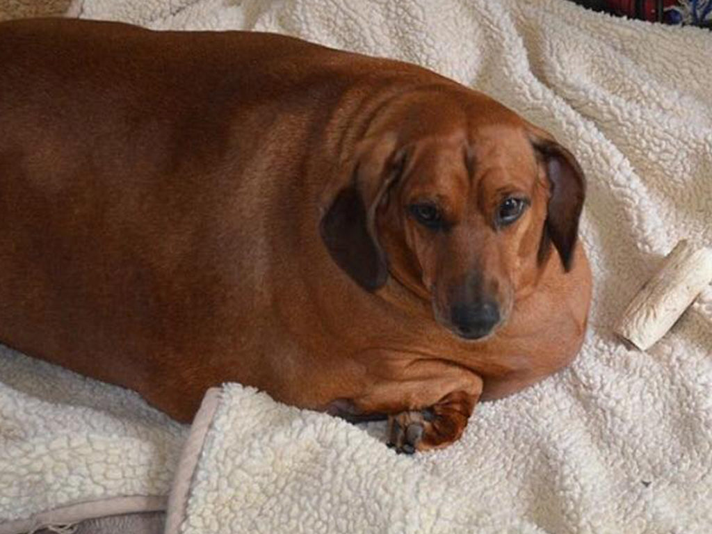 She fed him Purina Veterinary Diet OM. The OM Overweight Management Canine Formula is only available through a vet. It contains dietary protein that boosts the metabolism to burn off excess fat and helps pooches feel full.