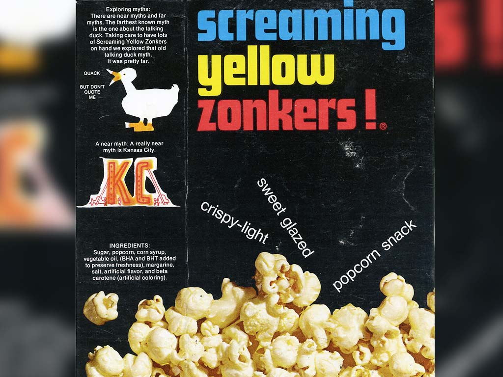 This snack food was like Cracker Jacks for the ’60s. It was popcorn with a yellow sugary glaze that was sold in a black box. You swore you could eat a whole box all by yourself, which explains why you’ve never been able to get rid of your love handles.