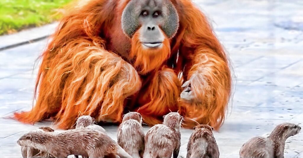 Noah received assistance in bringing the two species together after sharing the idea with a colleague zookeeper. The smaller, more frightened animals would be brought inside the orangutan’s enclosure, where he would keep a close eye on the situation.