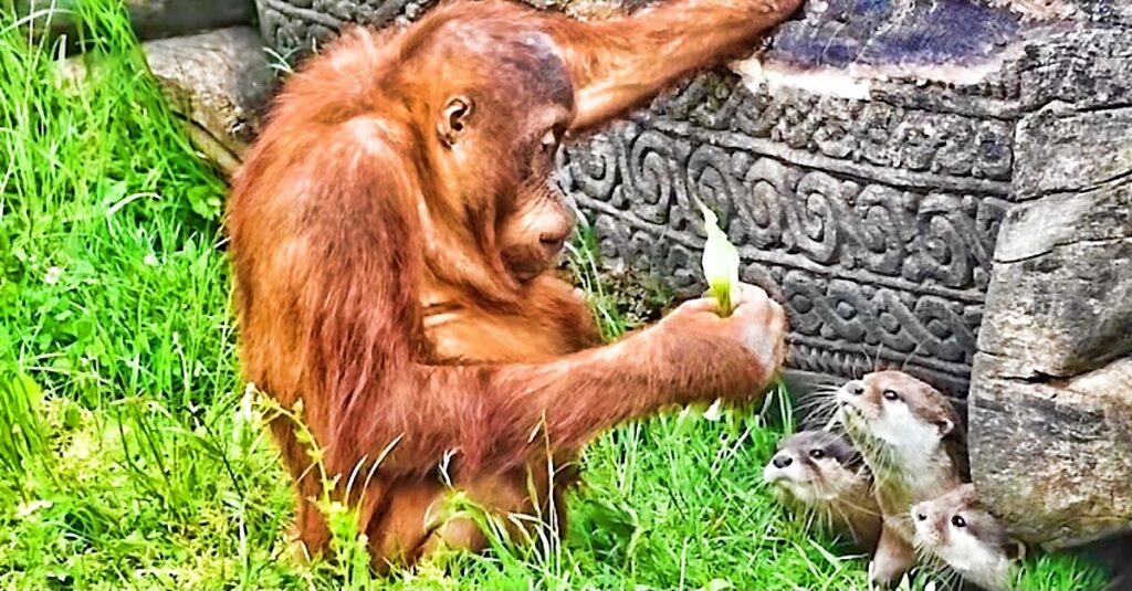 The orangutan had something clenched in its fist. Noah couldn’t make out what it was. He feared for the otters, but it was too late. All he could do was watch as the orangutan opened its fist and offered something to the closest otter. It was a peace offering!