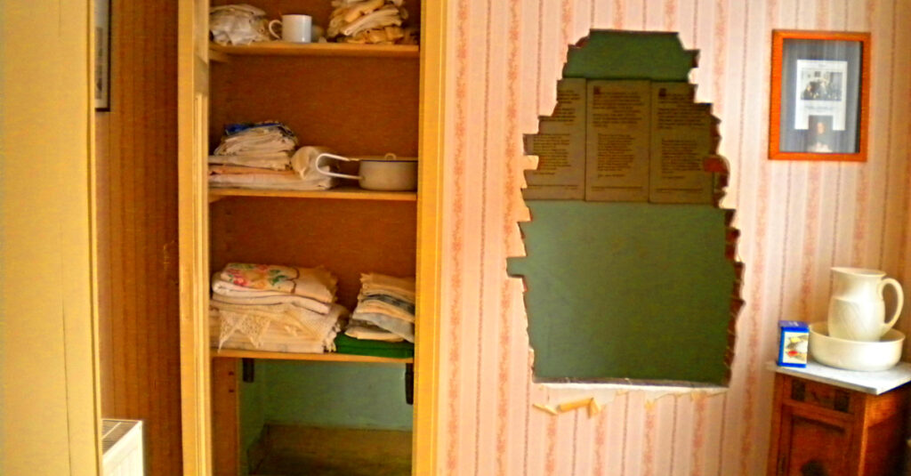 But looking inside one closet, they found something that looked like a secret passage. They didn’t need a key to open it; inside, they found a newspaper page from 20 years ago, and they started reading it, intrigued.