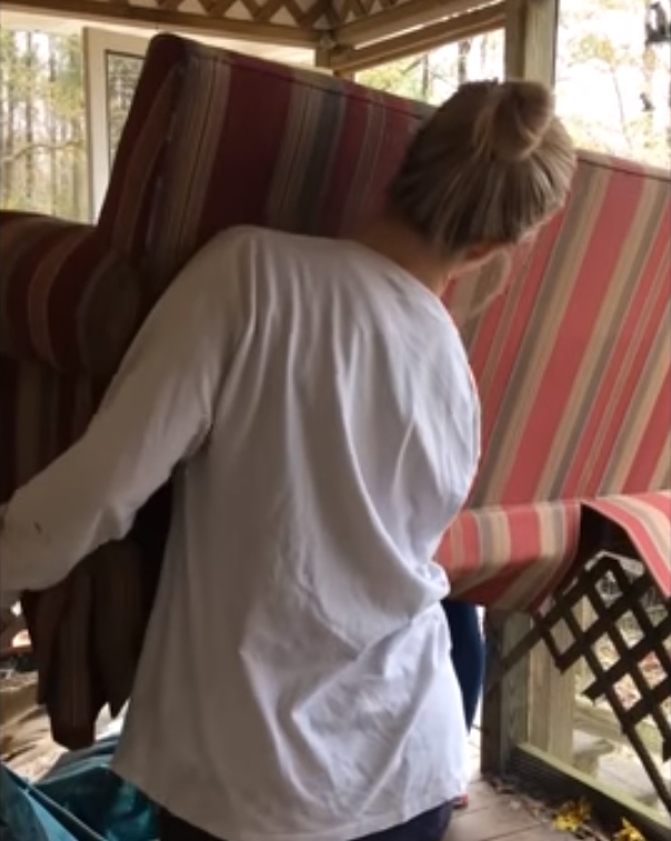 Quickly realizing that if they buy new furniture, they have to get rid of the old furniture, the girls faced a new challenge that was easier said than done. Despite working together as a team, they had a hilarious struggle pushing their old couch off their porch and into the yard!