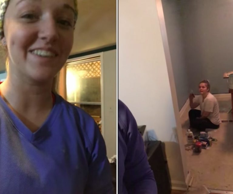 Haley took the camera and decided to document the progress the girls made on their own on the 5th day. With no one but Hollie seated on the floor of the dining room painting the wall blue, the two girls had a lot of work ahead of them.