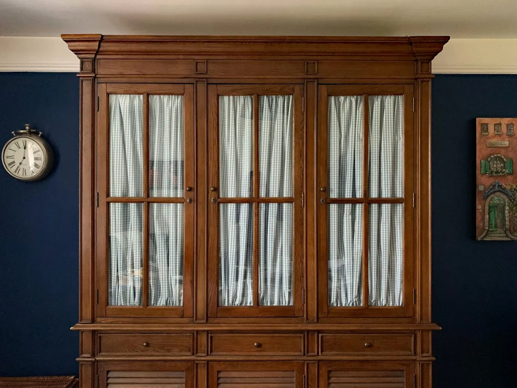 For example, not everyone wants to see their plate collection. Or maybe the china hutch is more for storage the showcasing grandma’s tea cups. Add some fabric on the inside of the window.