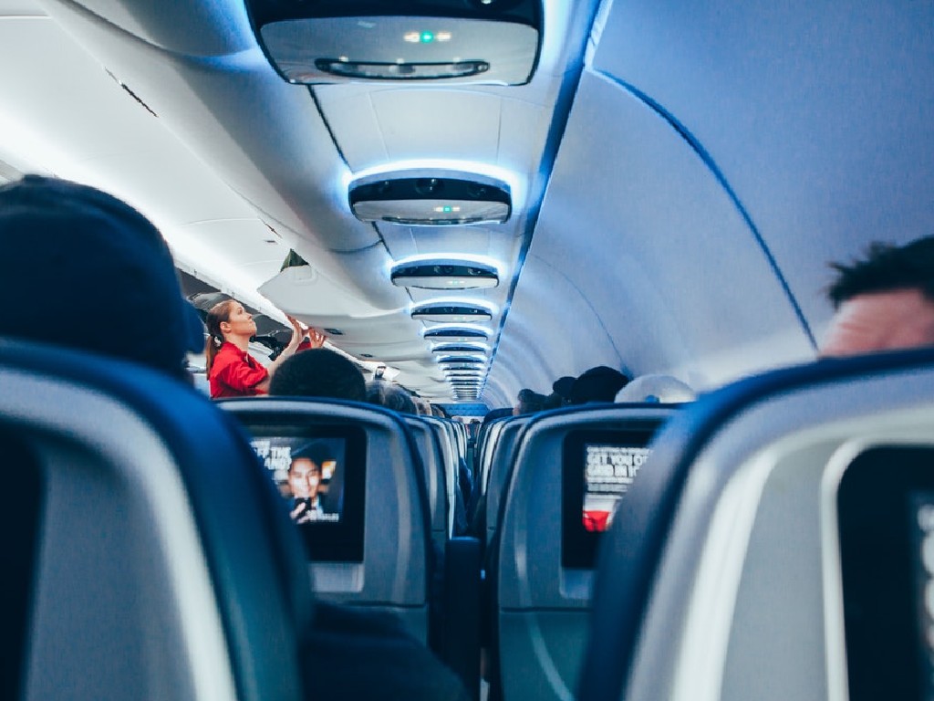 The stewardess is trying to help, dropping off a medkit, and puts a call out for a nurse or doctor.
