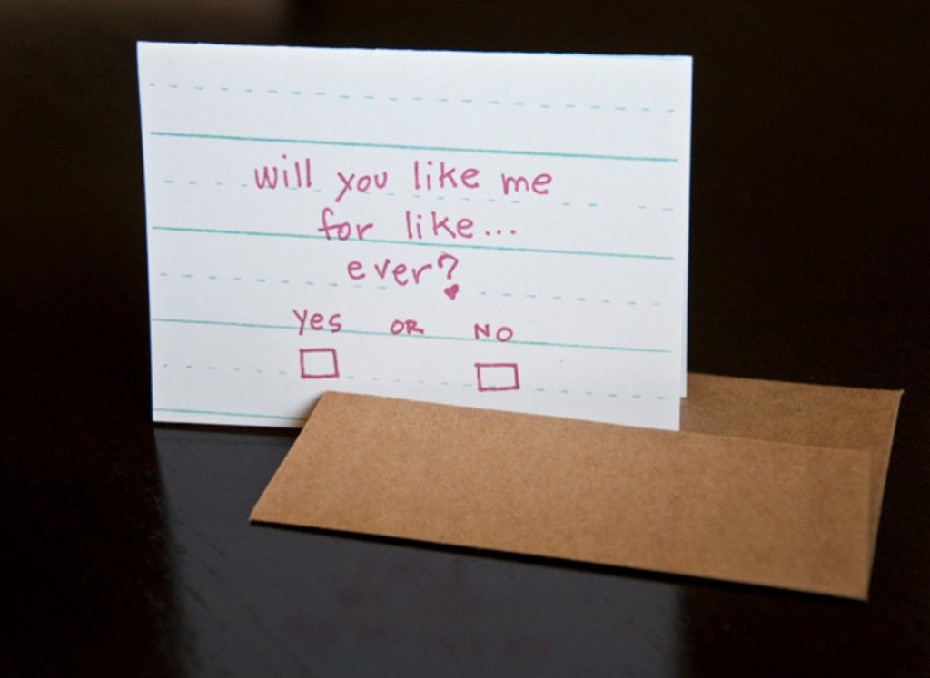 “In 8th grade I “dated” a boy entirely through notes passed via friends (We never actually spoke.) I broke up w him but had regrets. Hand-copied an entire tear-jerking story from Chicken Soup for the Teenage Soul in note form to win him back. (He never replied.)”